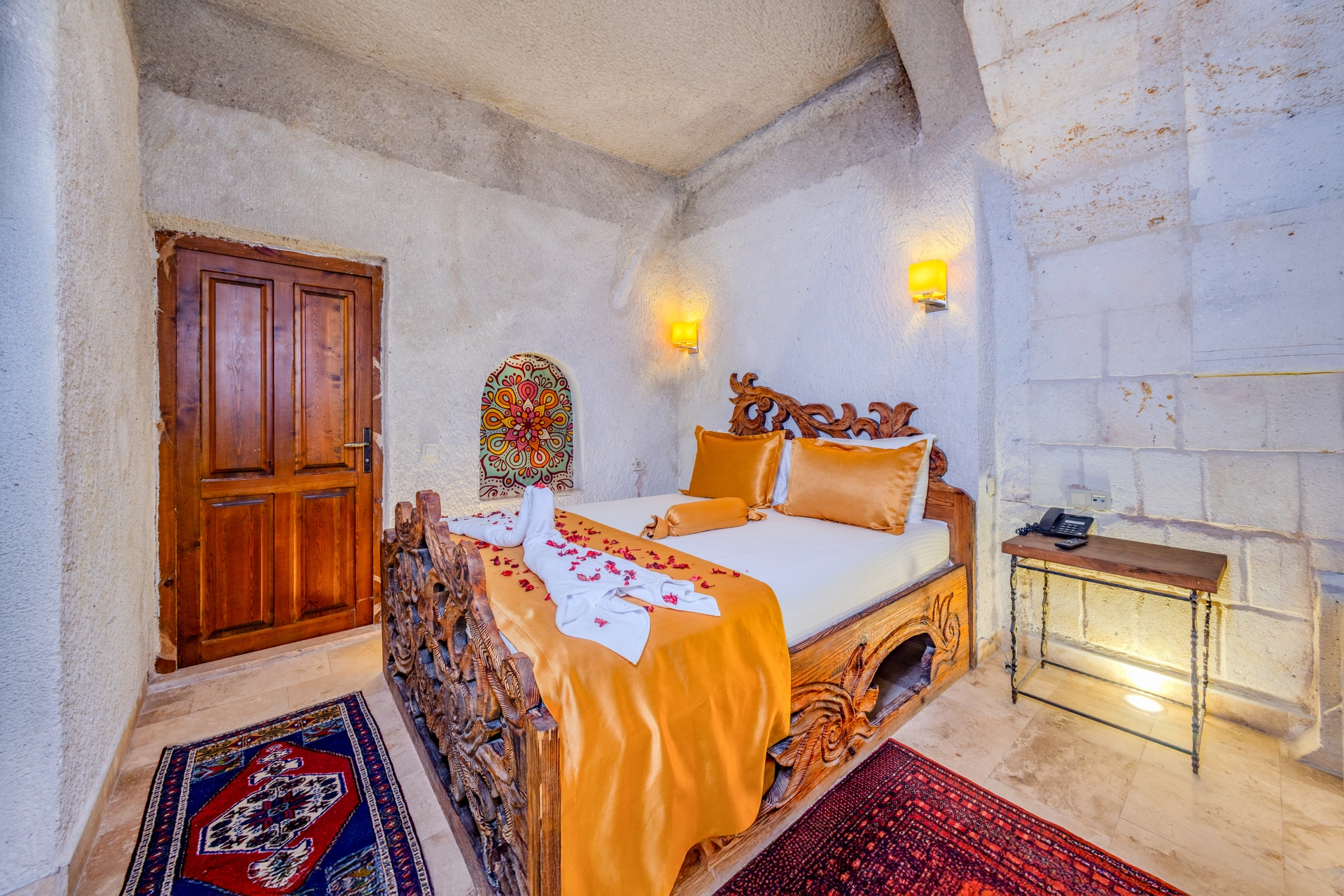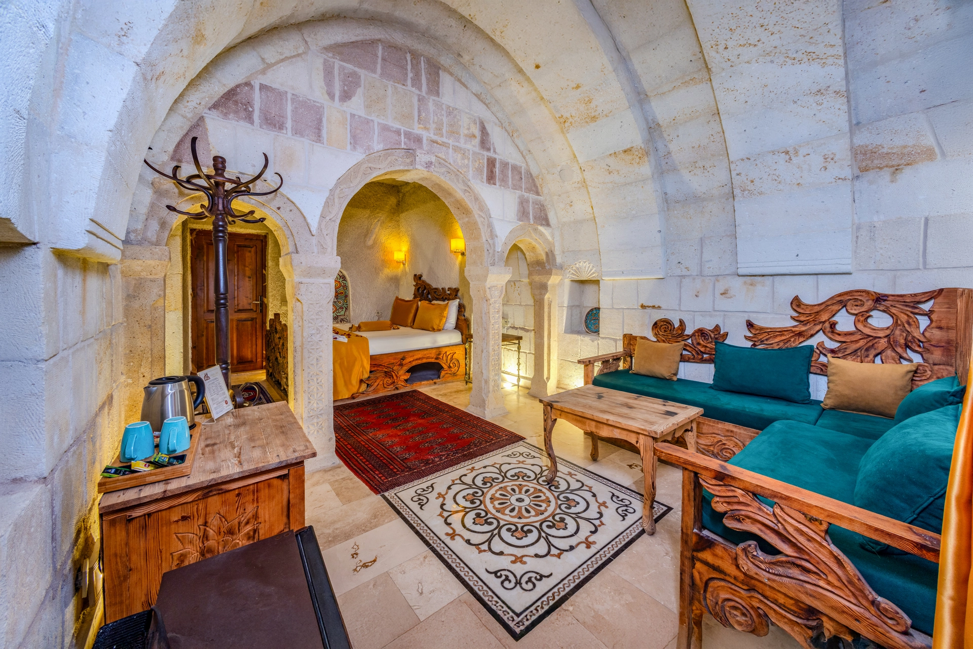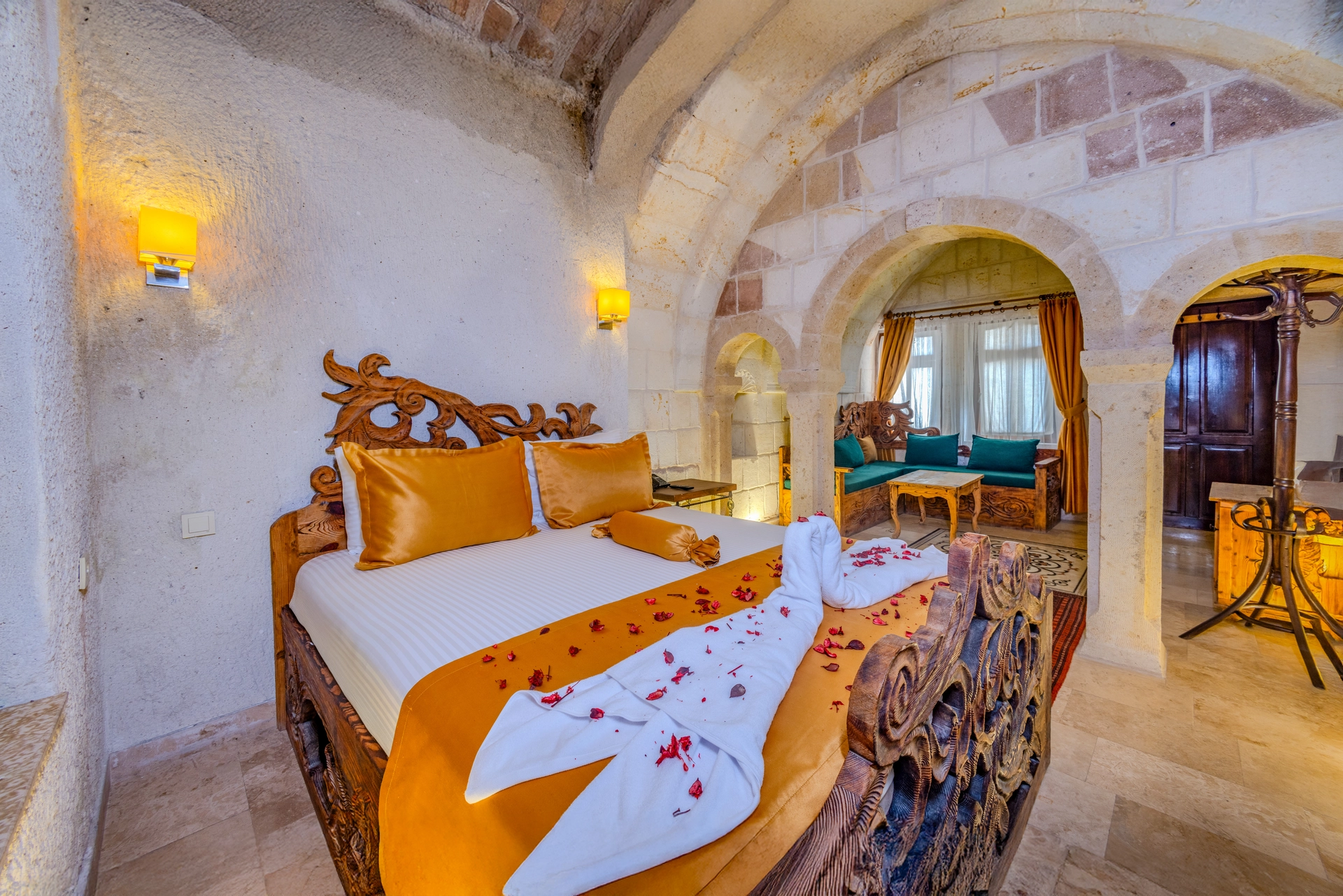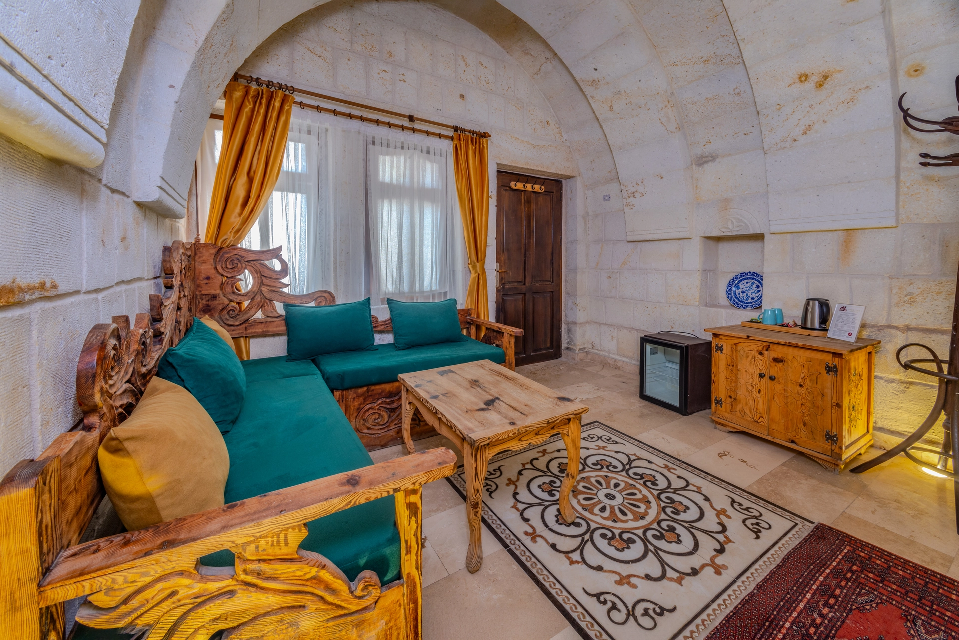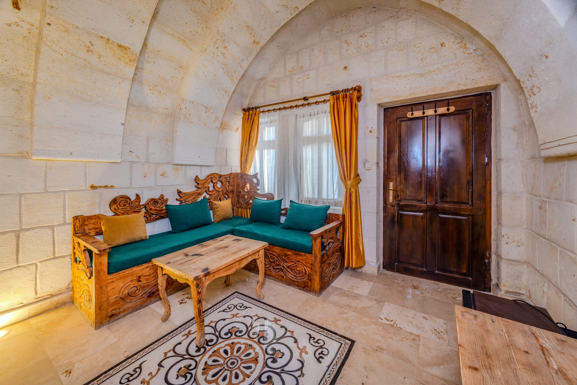 Welcome to Onur Cave Cappadocia, where the authentic spirit of Cappadocia comes to life. Our Junior Cave Room, number 104, offers a special stay with its elegant arched ceiling reflecting the region's traditional architecture and its rock-hewn walls. This room promises an unforgettable experience by blending historical texture with modern comfort.