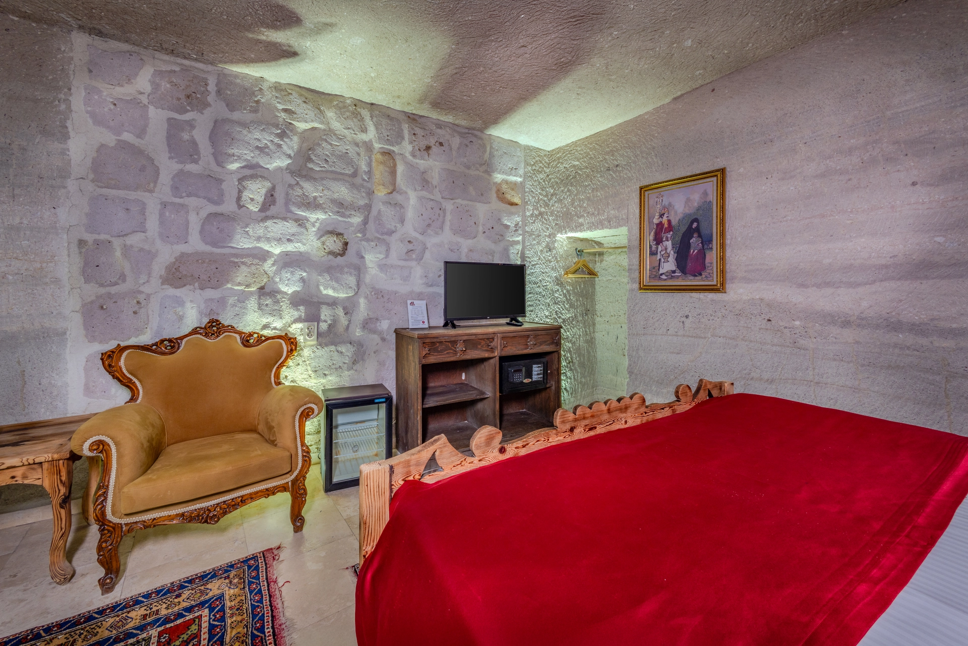 Welcome to Onur Cave Cappadocia, your serene haven in the heart of Cappadocia. Our Superior Cave Room, number 206, combines the region's unique rock textures with modern comforts and has been specially prepared to offer you a peaceful accommodation experience. This authentic cave room is the perfect starting point to feel the spirit of Cappadocia.